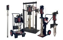 - pompy tłokowe chop-check - przetłaczają materiały o lepkości od 15 000 do ponad 1 000 000 cPs z wydajnością do 46,3 l/min (12,2 gal/min). Mechaniczna konstrukcja z płaskim zaworem zwrotnym przecina lepkie, ciągliwe materiały, które zatykają inne pompy, a modele o wysokim współczynniku przełożenia generują ciśnienie niezbędne do gęstych klejów i uszczelniaczy konstrukcyjnych. Są idealne do: poliuretanów, żywic epoksydowych, polimerów MS, gęstych klejów budowlanych;