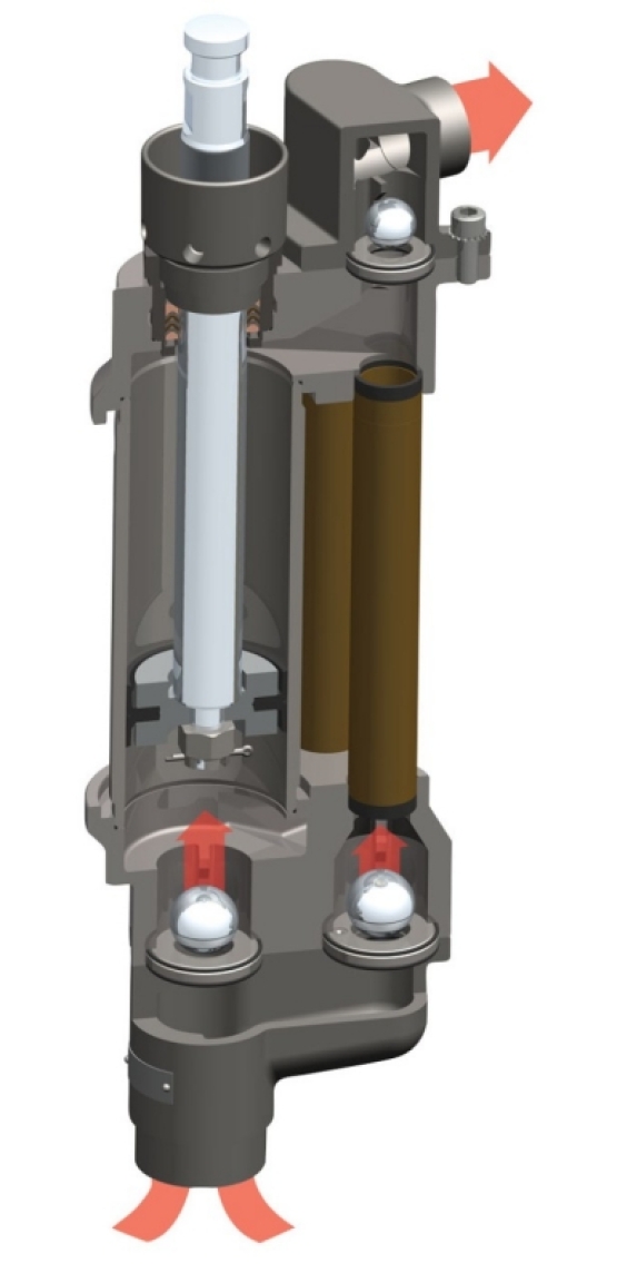 Wysokie natężenie przepływu – dzięki temu, że czterokulowa pompa tłokowa ARO może dozować pełną objętość cylindra przy każdym suwie