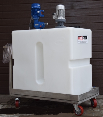 Prawidłowe dozowanie polielektrolitu zapewniają stacje do dozowania polielektrolitu w wersjach ze zbiornikiem o pojemności od 50 do 1000 litrów oraz pompą dozującą o maksymalnym przepływie 1566 l/h z płynną regulacją przepływu. W skład kompletu wchodzą: